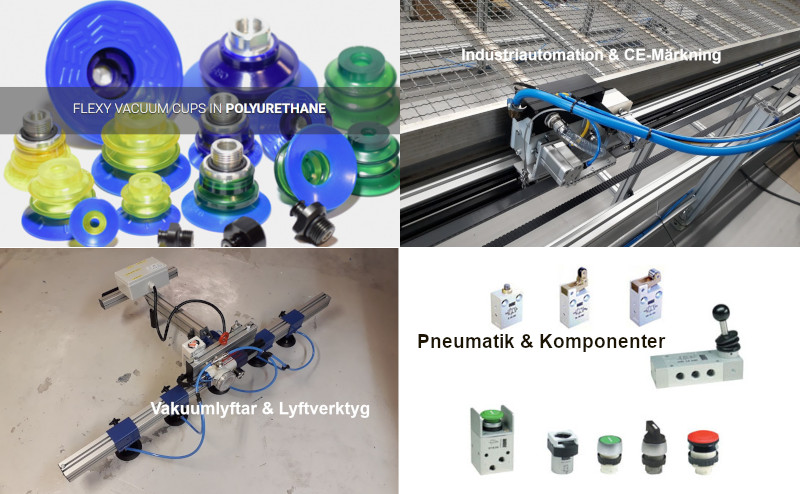 Hos oss kan ni beställa alla typer av automationsprodukter och vakuumlyftar. Kopplingar, ventiler, slang, sugkoppar, cylindrar, verktyg m.m.. Lagervaror skickar vi med standardfrakt samma dag om ordern läggs innan klockan 15.00. Om det krisar så kan vi skicka med expressfrakt. För att lägga ordrar börja med att registrera ett konto - använd länken i mailet för att själv aktivera ditt konto. Går också bra att ringa eller maila.